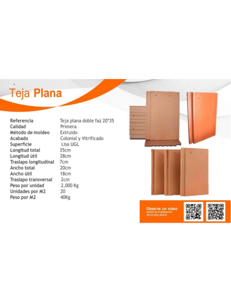 TEJA PLANA LISA COLONIAL ROJA 20X35